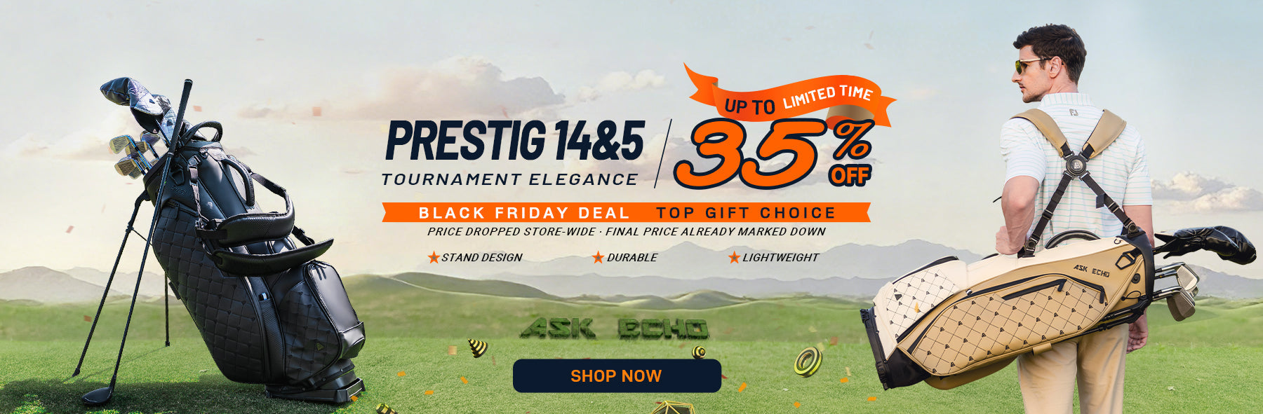 Ask Echo 2025 Prestige-14 Way Full Length Hybrid Leather Stand Bag / Toasted Alomnd